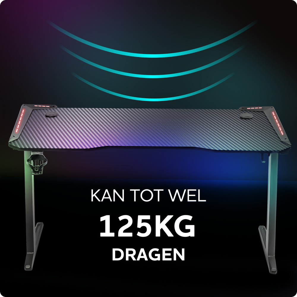 Dit gamebureau trekt niet alleen visueel de aandacht, maar is ook gemaakt van hoogwaardige materialen. Met een carbon fiber look, warmtebestendig ABS en een RVS onderstel is het niet alleen duurzaam, maar kan het ook tot 125 kg dragen. Daarnaast is het waterafstotend, krasbestendig en gemakkelijk schoon te maken, waardoor het perfect is voor gamers.